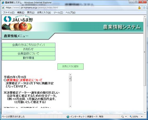 お使いのパソコンやソフトウェアの環境によって、農業情報システムが正しく表示